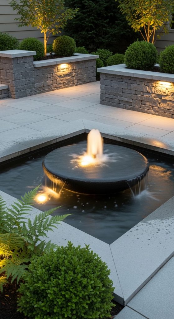 To create this setup, select a suitable location and choose a water feature design that fits the patio scale. Placement should allow visibility and sound distribution. Materials should be suitable for outdoor use.