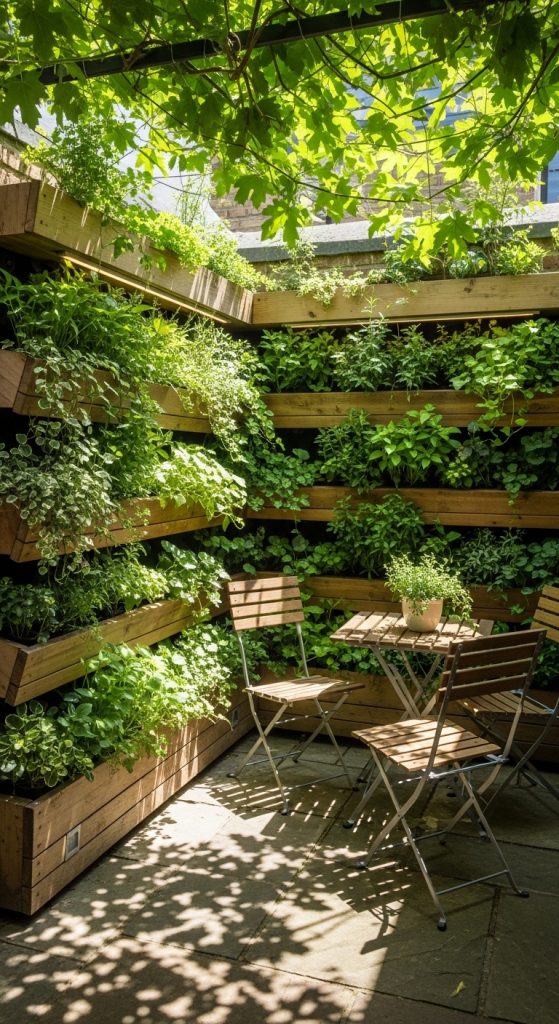 After positioning the plants, watering access and maintenance routines are established. Some setups may include drip systems for efficiency, while others rely on manual care. Final adjustments involve balancing plant distribution to ensure visual harmony. Over time, the vertical garden develops into a lush green feature that enhances privacy and aesthetic value. It transforms the patio into a refreshing outdoor space that feels connected to nature while maintaining organized structure and design clarity.