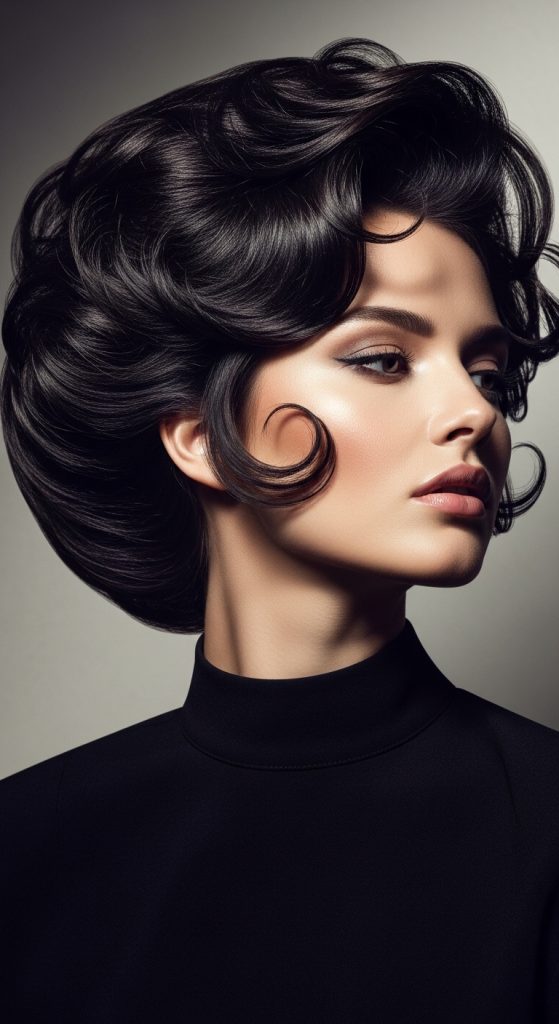 To create this style, use a round brush and blow dryer to lift the front sections while curling them outward. Apply volumizing mousse before drying to enhance hold and structure. Each front section should be rolled away from the face while applying heat for shape. Once cooled, lightly comb through the curls to maintain bounce without flattening volume. This method requires moderate effort but delivers a polished finish suitable for both casual and formal settings.
