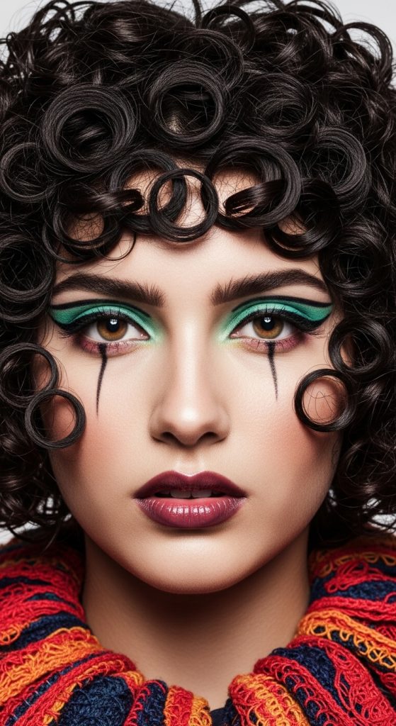 To achieve this style, use a small barrel curling tool or thin flex rods. Section the front strands and curl tightly from root to tip. Hold each curl in place until fully cooled before releasing. Separate minimally to maintain definition. This method requires precision but delivers strong visual impact suitable for themed styling or statement looks.