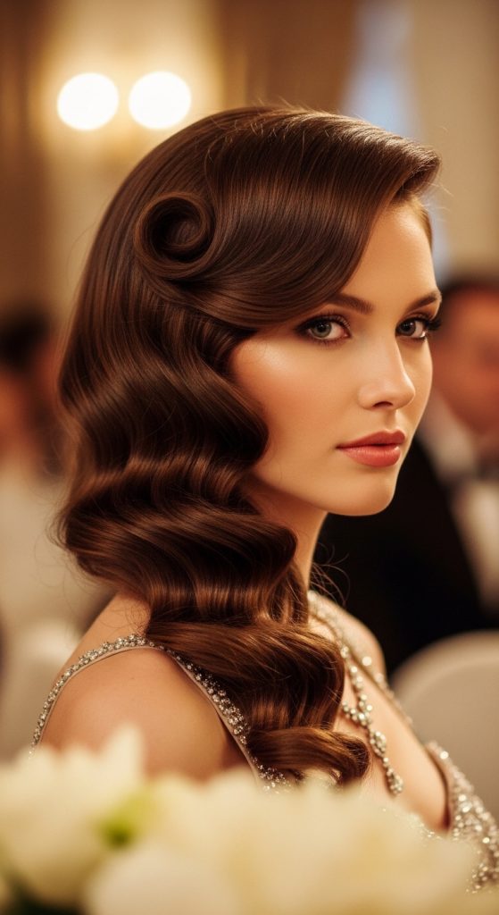 Side-swept elegant front curls create a dramatic asymmetrical look where the front hair is styled toward one side. This adds sophistication and is often used in formal or evening styling. The curls help define the direction of the hairstyle while adding movement and softness. This idea is popular in Pinterest ideas for its elegant yet simple execution.