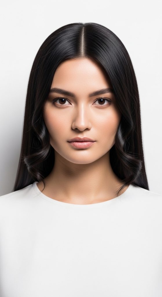 Minimalist straight-to-curl front style combines straight hair with lightly curled front sections. This contrast creates a clean and modern aesthetic often seen in minimalist style trends. It is ideal for individuals who prefer subtle styling changes.