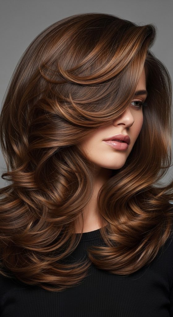 Voluminous waves focus on creating lift at the roots while maintaining soft waves throughout the length. This hairstyle enhances fullness and is ideal for individuals with flat or fine hair. It is widely used in aesthetic inspiration boards for its dramatic yet natural appearance.