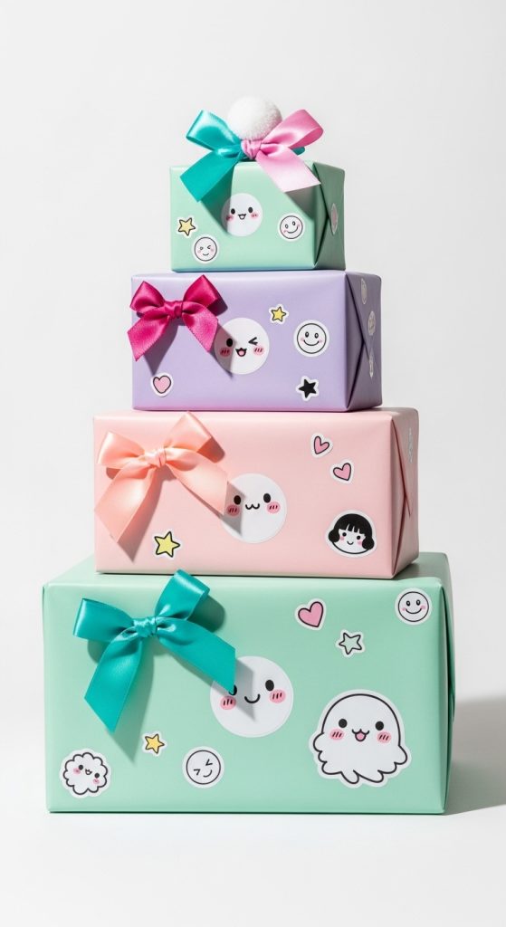 Idea 6: Kawaii Sticker Custom Gift Boxes