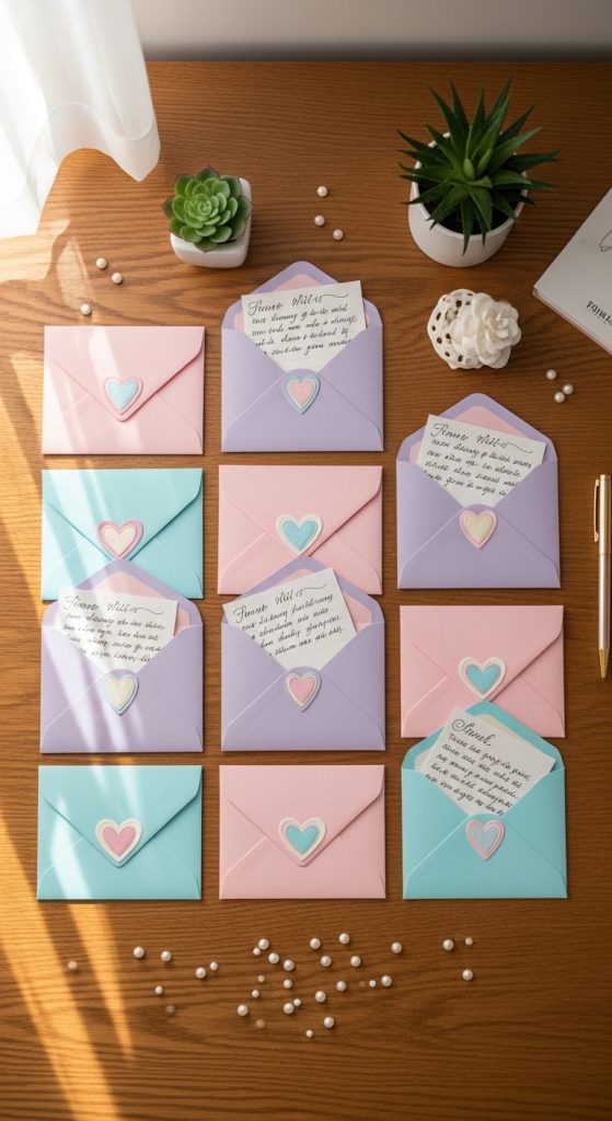 To create them, use colored craft paper to fold small envelopes in uniform sizes. Decorate each envelope with stickers, drawings, or handwritten messages. Insert small notes, printed photos, or mini affirmations inside each envelope to build a memory collection. Glue or bind multiple envelopes together into a card set or booklet format. Materials include decorative paper, glue, markers, and optional embellishments like ribbons. The step by step process involves folding, decorating, filling, and assembling. This DIY tutorial style project is easy to customize and works well as a budget friendly creative project for meaningful birthday gifting.