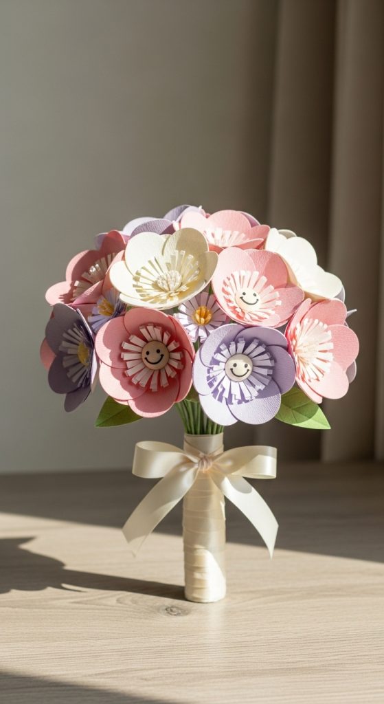 Kawaii paper flower bouquets are handmade floral arrangements designed using colorful paper instead of real flowers. These bouquets are popular in DIY birthday gifts because they last longer and can be customized in various aesthetic styles. The kawaii approach uses soft pastel shades and simple flower shapes that create a delicate and charming visual effect. These bouquets are often shared as Pinterest ideas for home decor inspiration and event decoration. Unlike real flowers, paper versions allow full control over color combinations and design structure, making them suitable for minimalist style arrangements. They also serve as meaningful handmade decoration pieces that can be kept as long-term keepsakes. Beginners appreciate this project because it does not require complex tools and can be completed using basic crafting materials.