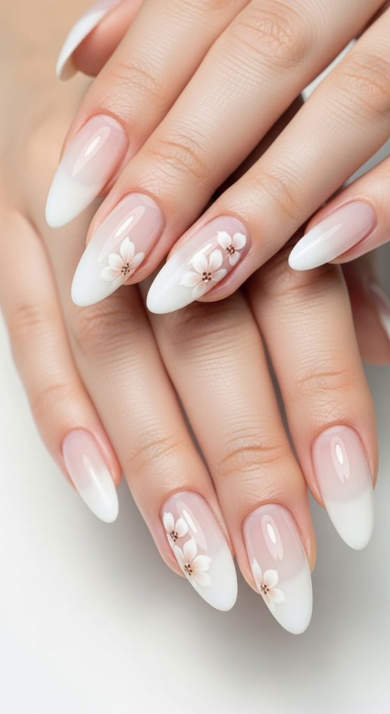 Idea 2: Milky White Minimal Floral Tips