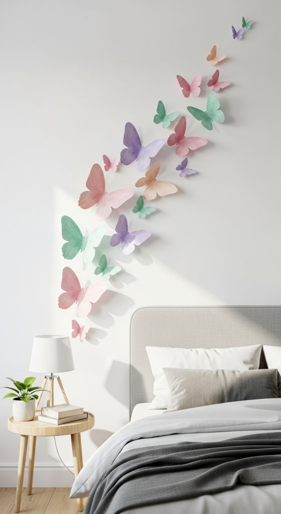 Idea 1: Soft Pastel Layered Butterfly Wall Display